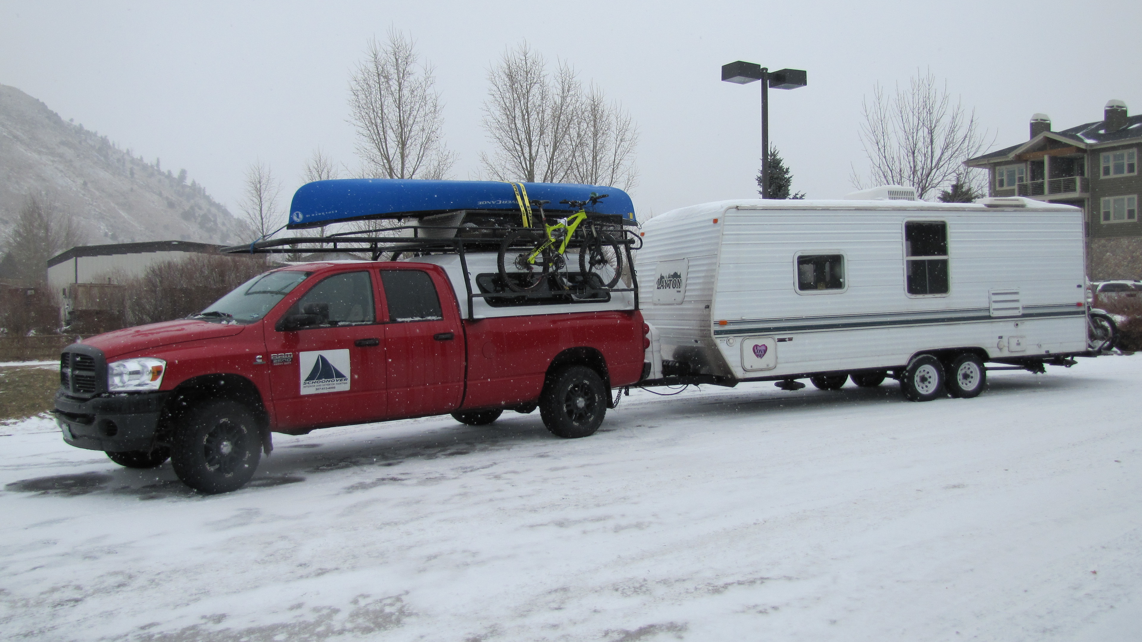 Watch out Californians; Wyomingites in Santa Barbara! I’m not relocating here or even trying to blend, I’m just enjoying warm weather while we paint my boyfriend’s aunt’s house to earn some extra cash for this trip. We have the giant Dodge Ram and the trailer which we drove out here and the ONLY place to park is on the street. The ‘streets’ in this neighborhood are these tiny hedge-lined paths that are only wide enough for one-way traffic but not only does traffic go both ways, but people park on both sides of the street. Since there is beach access nearby, the streets are inevitably used frequently.
