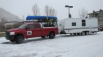 We were trying to go to the paint store and JT leaves the truck running, (which is frowned upon by Californians) while it is pulled out halfway into the street when he realizes he needs to move his aunt’s car into the driveway. In the meantime, a Mercedes driving woman with a sour expression on her face whips around the corner and glares at me as I stand in front of the truck which is blocking her way. But now she is blocking the driveway in which JT is trying to pull into. I try to explain to her that if she would just back up, JT could park the aunt’s car and then we would be leaving in the truck. Sour-face just glares at me and doesn’t move an inch. Maybe all the botox has temporarily frozen her whole body. Then someone else starts coming down the street in the other direction. Since I’m standing in front of the truck; I am the target of these people’s annoyance for taking up their time. JT yells at me to JUST MOVE THE TRUCK!! But where the hell am I suppose to move it? The road is blocked with unhappy drivers on either side. Trying to fix the problem fast, I tried to move the truck to the front of the trailer which requires me to wedge the truck between a parked car and our trailer with an inch to spare on either side. Long story short, I ran the truck’s mounting rack into the side of our trailer and wedged it so that going forward or backward would damage the truck rack. My bicycle was mounted to the rack so there was also the possibility of damaging my only outlet for exercise. Too stressful under the evil glare of sour-face, Mercedes woman; so I happily handed over the wheel to JT. Happy Ending: NO damage done to my bike and I guess Sour-Face probably got to her colonic appointment.
