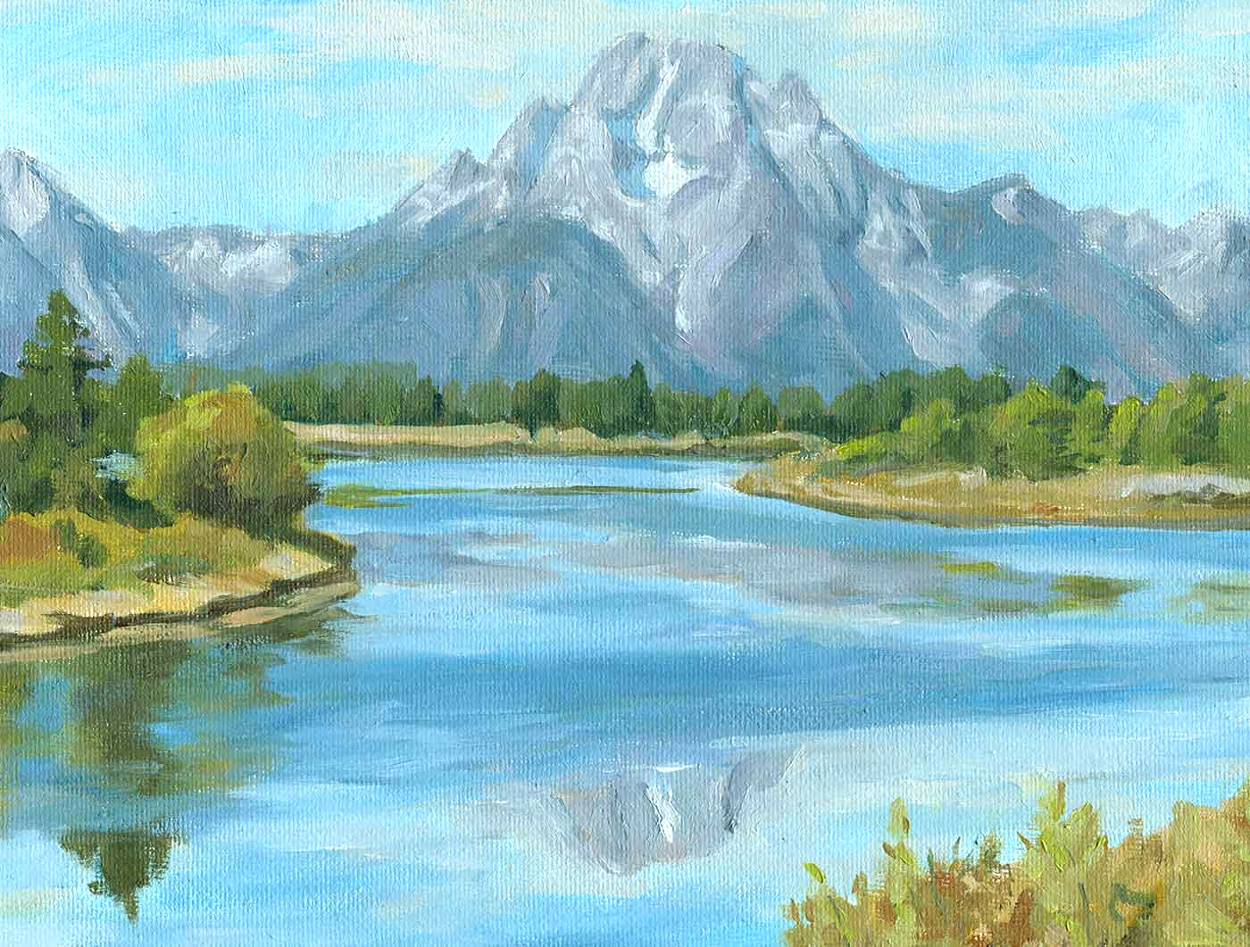 Mt. Moran from Oxbow Bend November 12, 2011 Return to: Available PaintingsFull resolution (1400 × 1061) Image navigation Previous Image Next Image Mt. Moran 8" x 10" $300 Share this: Share on X (Opens in new window) X Share on Facebook (Opens in new window) Facebook Like Loading...